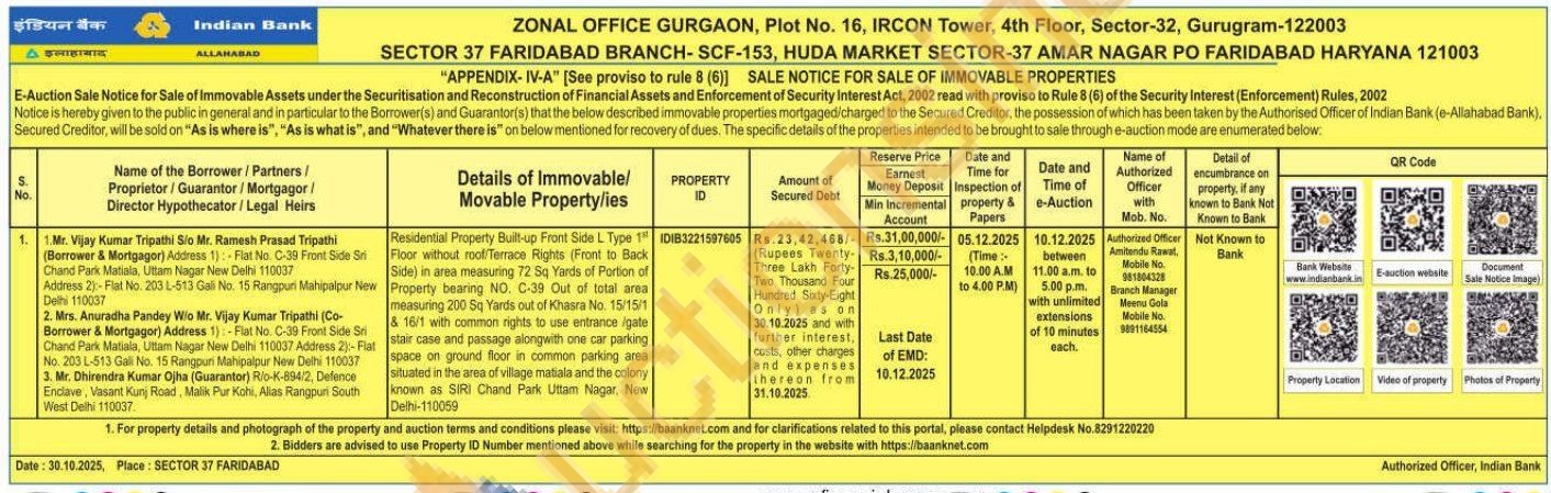 Property Built-up Front Side L Type 1 Floor without root Terrace Rights (Front to Back Side) in area measuring 72 Sq Yards of Portion of Property bearing NO. C-39 Out of total area measuring 200 5q Yards out of Khasra No. 15/15/1 & 16/1 with common rights to use entrance/gate stair case and passage alongwith one car parking space on ground floor in common parking area situated in the area of village matala and the colony known as SiRi Chand Park Uttam Nagar, New Delhi