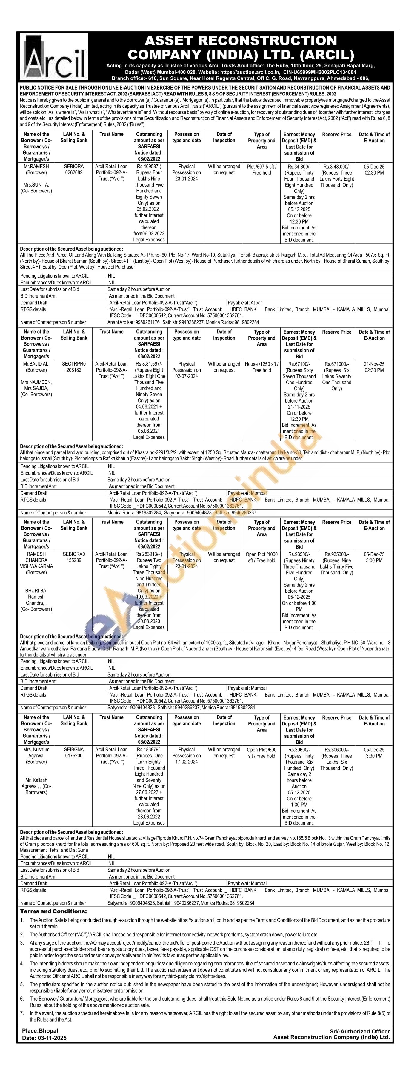 All that piece and parcel of land an building, Comprised in out of Open Plot no. 64 with an extent of 1000 sq. ft., Situated at Village-Khandi, Nagar Panchayat-Shuthaliya, P.H.NO. 50, Ward no. -3 Ambedkar ward suthaliya, Pargana Biaora, Dist-Rajgarh, M.P. (North by)- Open Plot of Nagendranath (South by)- House of Karansinh (East by)-4 feet Road (West by)- Open Plot of Nagendranath. further details of which are as under