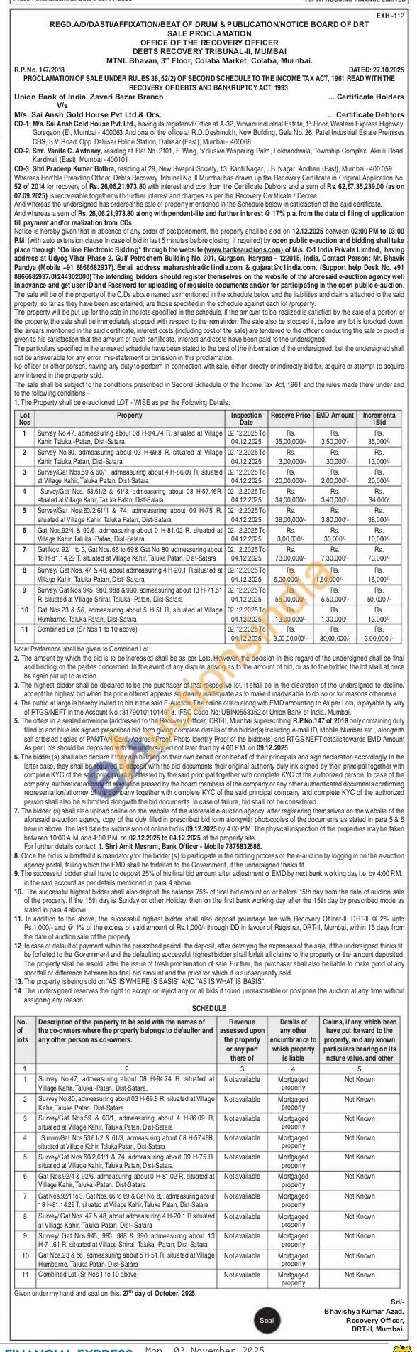 Contact Shri Amit Mesram, Bank Officer Mobile 7875832686/Contact Person: Mr. Bhavik Pandya (Mobile +91 8866682937)