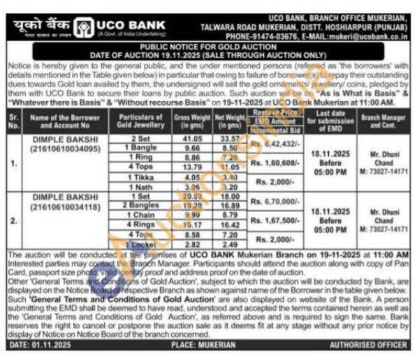 UCO Bank Gold Auctions Auction in Davanagere
