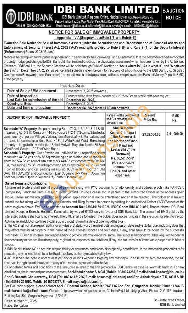 Schedule "A" Property: Property bearing Sy.no: 70/3, 4, 5, 12, 13, 14 & 15, measuring Ac: 0-91% Cents or 4440 Sq. yds or 3712.417 Sq.mts, Situated at Jammunarayanpuram Village, Vizianagram Municipality & Mandalam, and the same is bounded as under:- East: 40 Feet Wide Road, West: Remaining property belongs to the vendor (i.e., Saladi Mutyala Rayudu), North: 30 Feet Wide Road, South: 100 Feet Wide Road