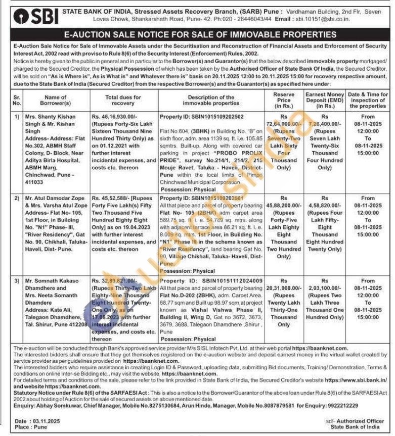 Flat No.604, (3BHK) in Building No. "B" on sixth floor, adm. area 1139 sq. ft. ie. 105.85 sqmtrs. Built-up. Along with covered car parking in project "PROBO PROLIX PRIDE", survey No.214/1, 214/2, 215 Mouje Ravet, Taluka Haveli, District-Pune within the local limits of Pimpri Chinchwad Municipal Corporation.