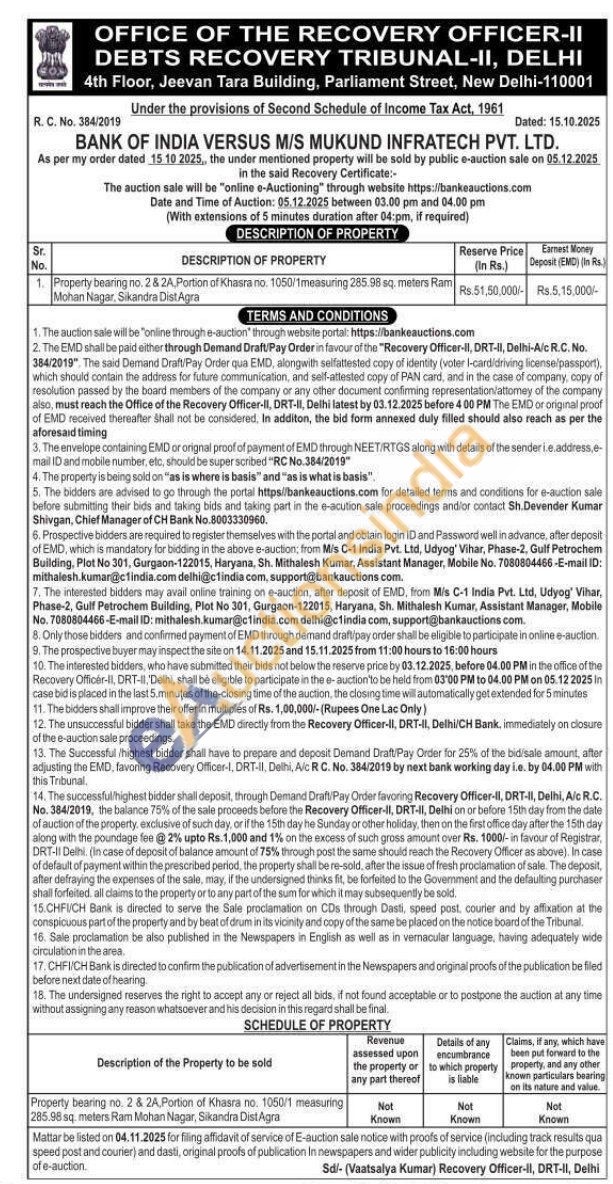 Property bearing no. 2 & 2A, Portion of Khasra no. 1050/1measuring 285.98 sq. meters Ram Mohan Nagar, Sikandra Dist Agra