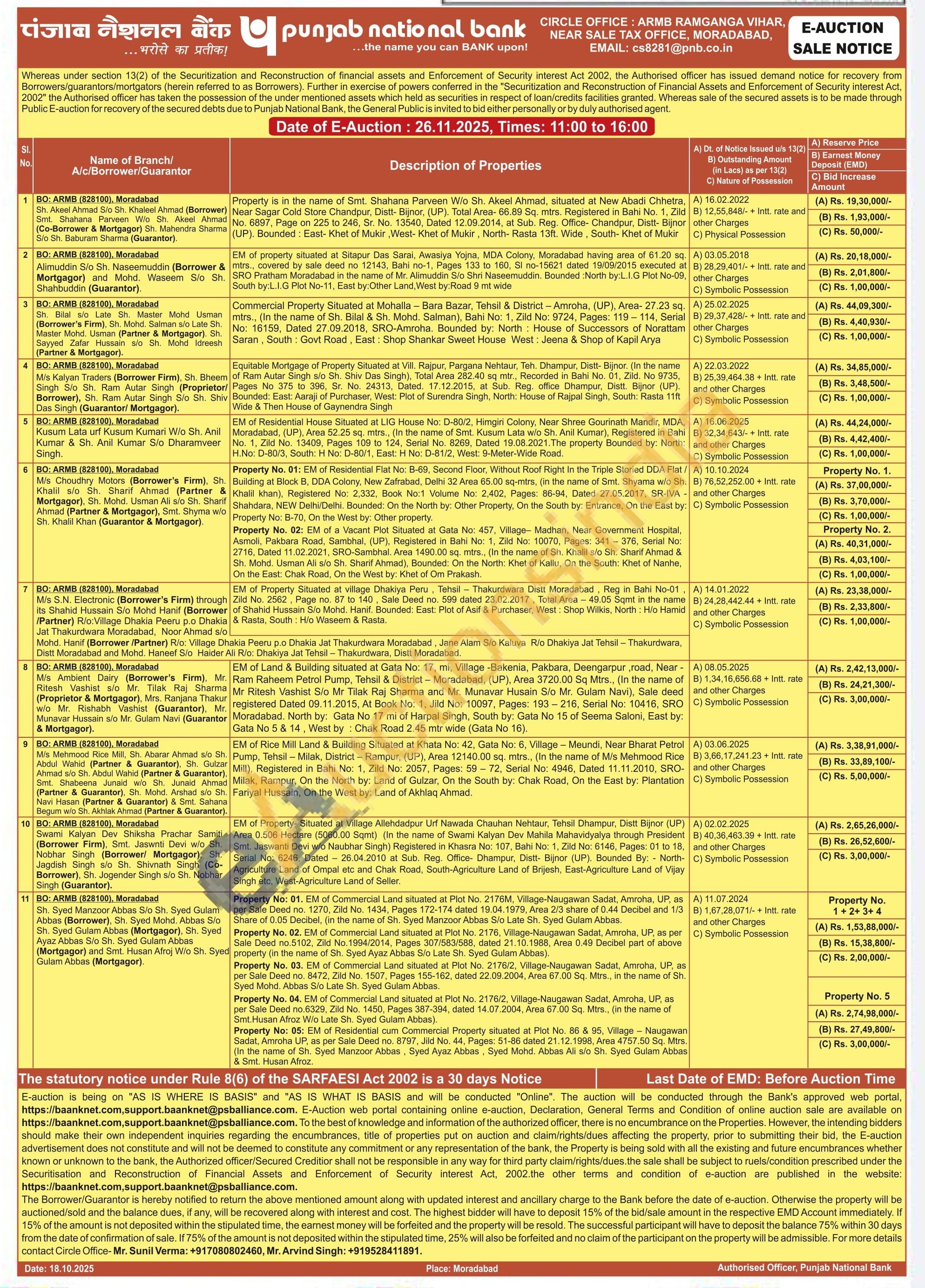 Contact Circle Office-Mr. Sunil Verma: +917080802460, Mr. Arvind Singh: +919528411891.