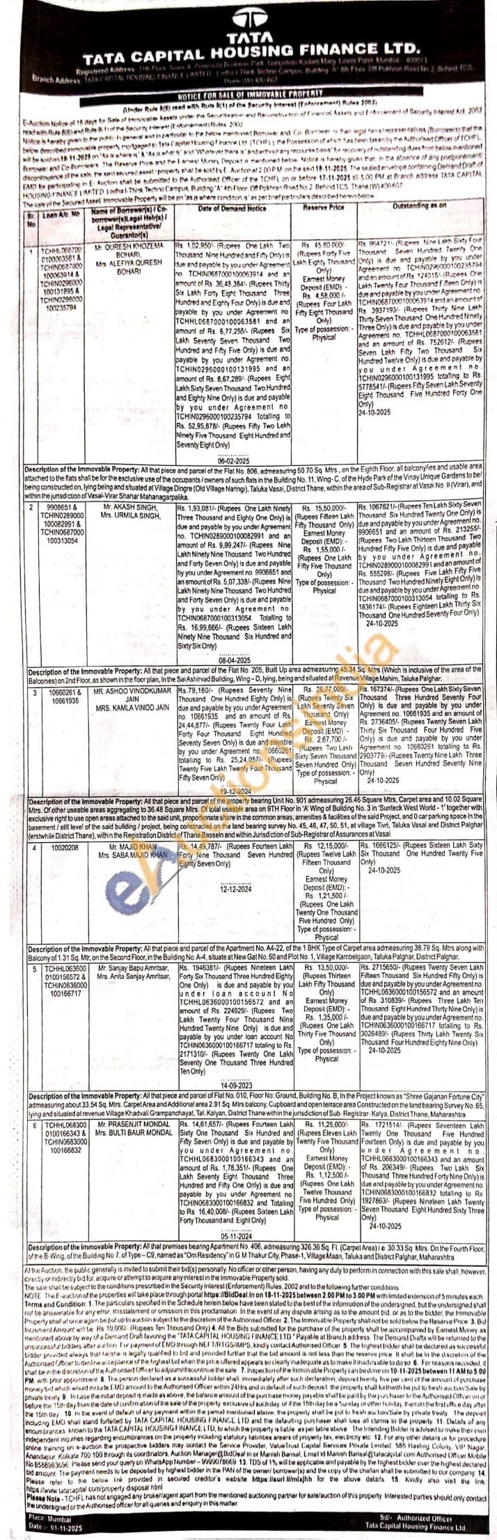 1) All that piece and parcel of the Flat No. 806, admeasuring 50 70 50 Atts, on the Eighth Floor, al balconyles and usable area attached to the fats shall be for the exclusive use of the occupants/owners of such flats in the Building No. 11, Wing-C. of the Hyde Park of the Vinity Unique Gardens to be being constructed on, lying being and shuated at Village Diensgre (Old Village Narng), Taluka Vasai, District Thane, within the area of Sub-Registrar at Vasai No (Virar, and within the jurisdiction of Vasai-Virar Shanar Mahanagarpalika