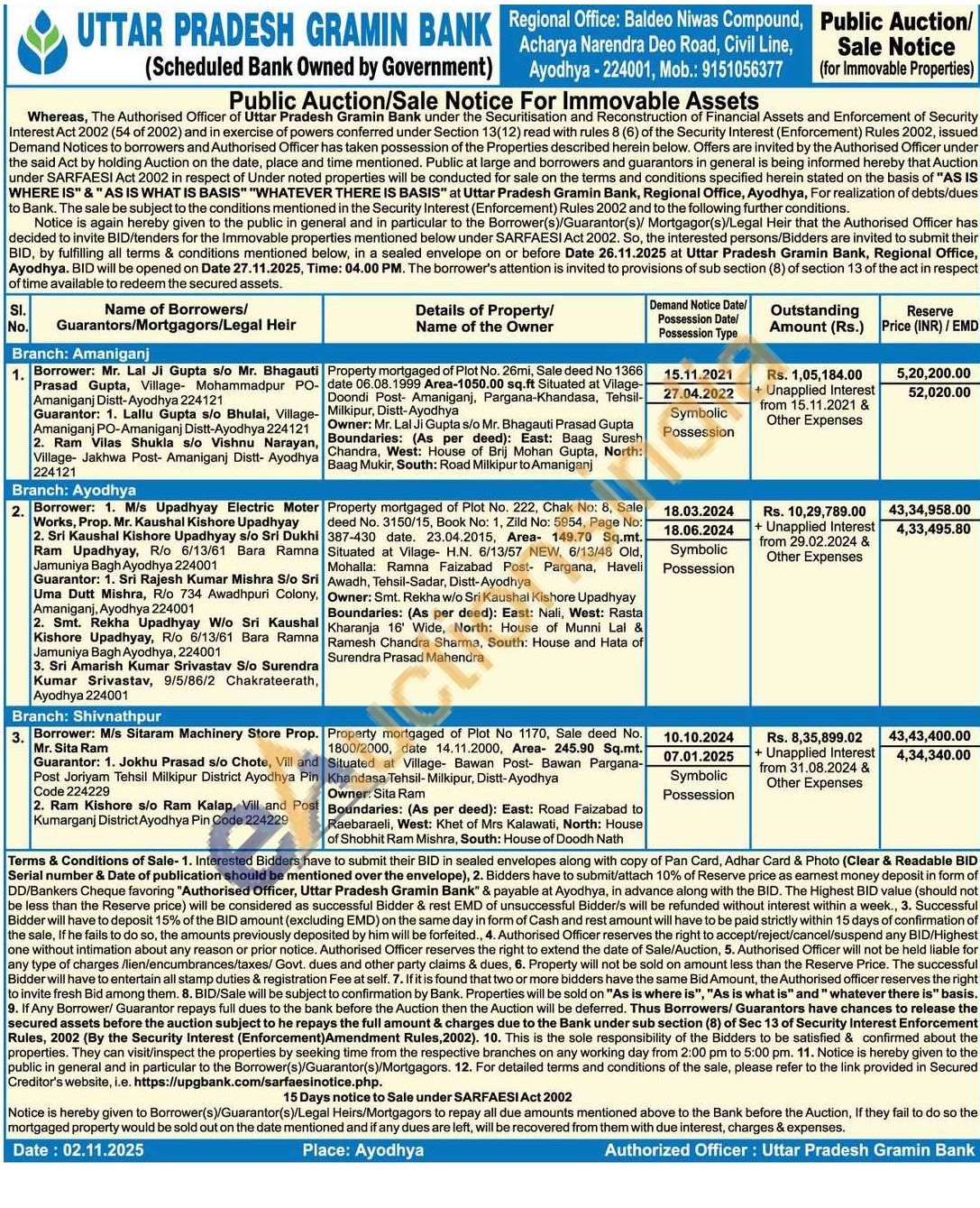 Property mortgaged of Plot No 1170, Sale deed No. 1800/2000, date 14.11.2000, Area- 245.90 Sq.mt. Situated at Village Bawan Post- Bawan Pargana-Khandasa Tehsil-Milkipur, Distt-Ayodhya Owner: Sita Ram Boundaries: (As per deed): East: Road Faizabad to Raebaraell, West: Khet of Mrs Kalawati, North: House of Shobhit Ram Mishra, South: House of Doodh Nath