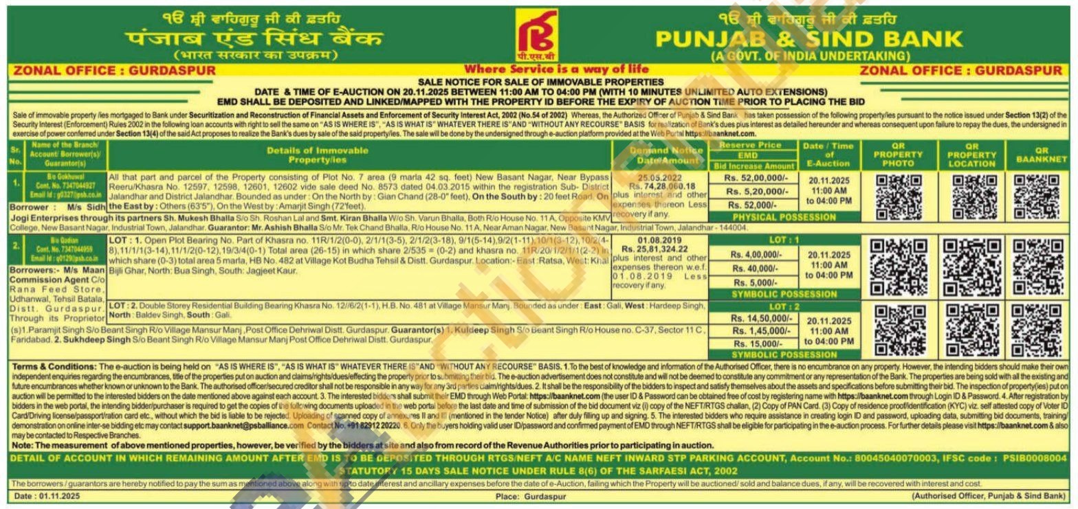 LOT: 1. Open Plot Bearing No. Part of Khasra no 118/1/210-01 2/1/1(3-5), 2/1/23-18), 9/1(5-14),9/2(1-111:10/1(3-12) 10/2/4- 8),11/1/13-14) 11/1/210-12) 19/3/4(0-1) Total area (26-15) in which share 2/535 (0-2) and khasra no. 118/20/1/2/1/1(2-2) in which share (0-3) total area 5 marla, HEB No. 482 at Village Kot Budha Tahail & Distt. Gurdaspur Location-East Ratsa, West: Khat Maan Bijli Ghar, North Bua Singh, South Jagjeet Kaur