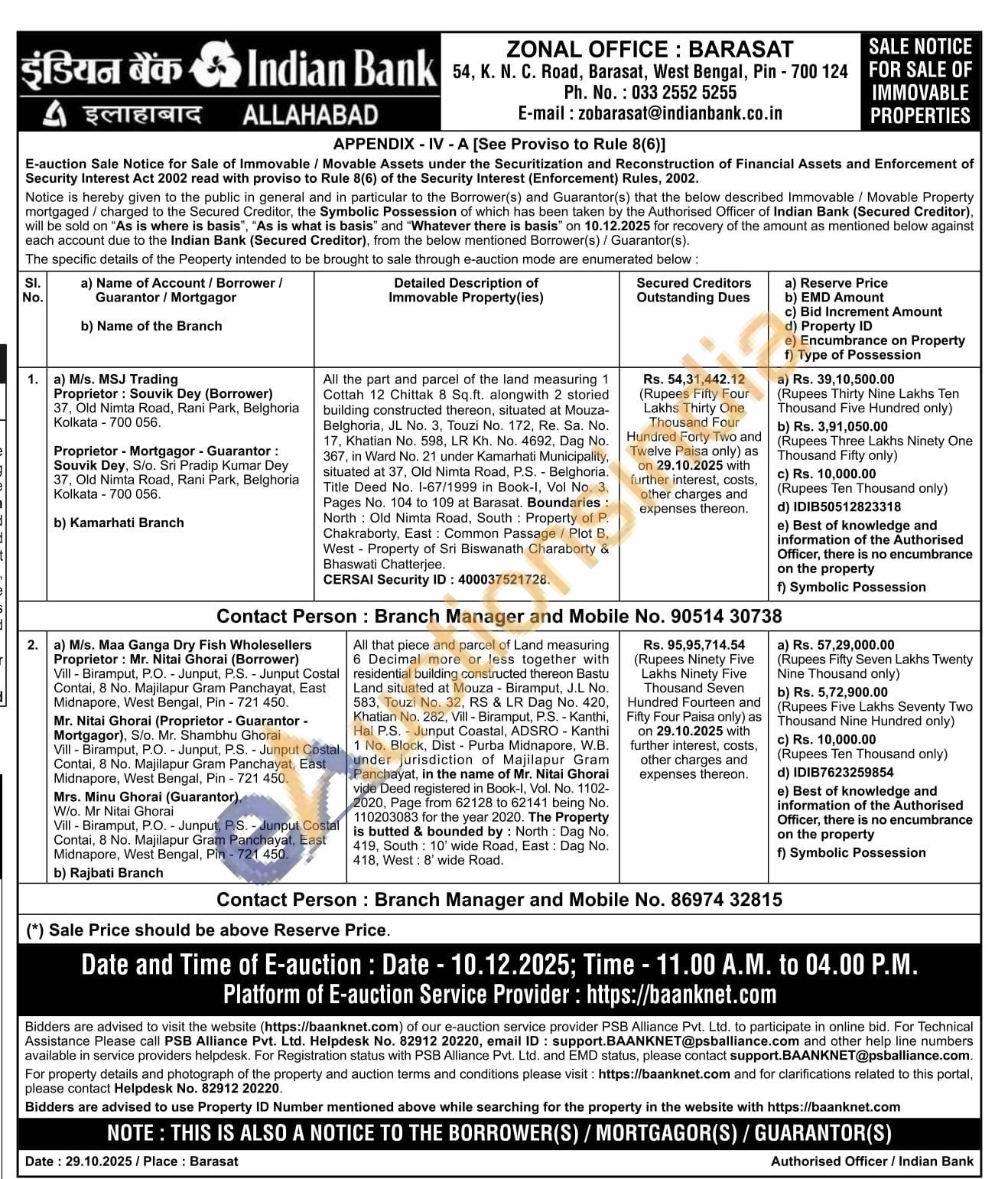 All the part and parcel of the land measuring 1 Cottah 12 Chittak 8 Sq.ft. alongwith 2 storied building constructed thereon, situated at Mouza-Belghoria, JL No. 3, Touzi No. 172, Re. Sa. No. 17, Khatian No. 598, LR Kh. No. 4692, Dag No. 367, in Ward No. 21 under Kamarhati Municipality, situated at 37, Old Nimta Road, P.S. Belghoria. Title Deed No. 1-67/1999 in Book-1, Vol No. 3. Pages No. 104 to 109 at Barasat. Boundaries: North: Old Nimta Road, South Property of P. Chakraborty, East: Common Passage / Plot B, West Property of Sri Biswanath Charaborty & Bhaswati Chatterjee.