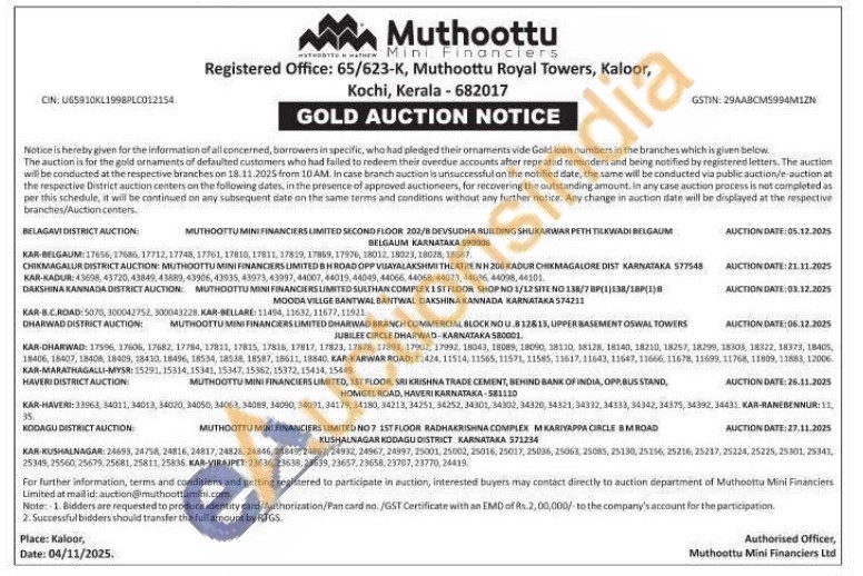 Muthoottu Mini Financiers Limited Gold Auctions Auction in Belagavi