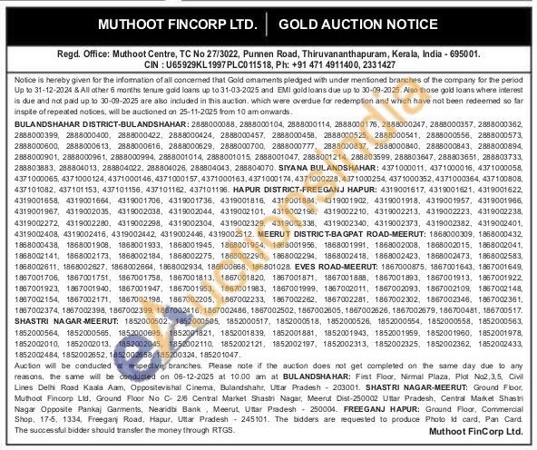 Muthoot Fincorp Ltd Gold Auctions Auction in Bulandshahr