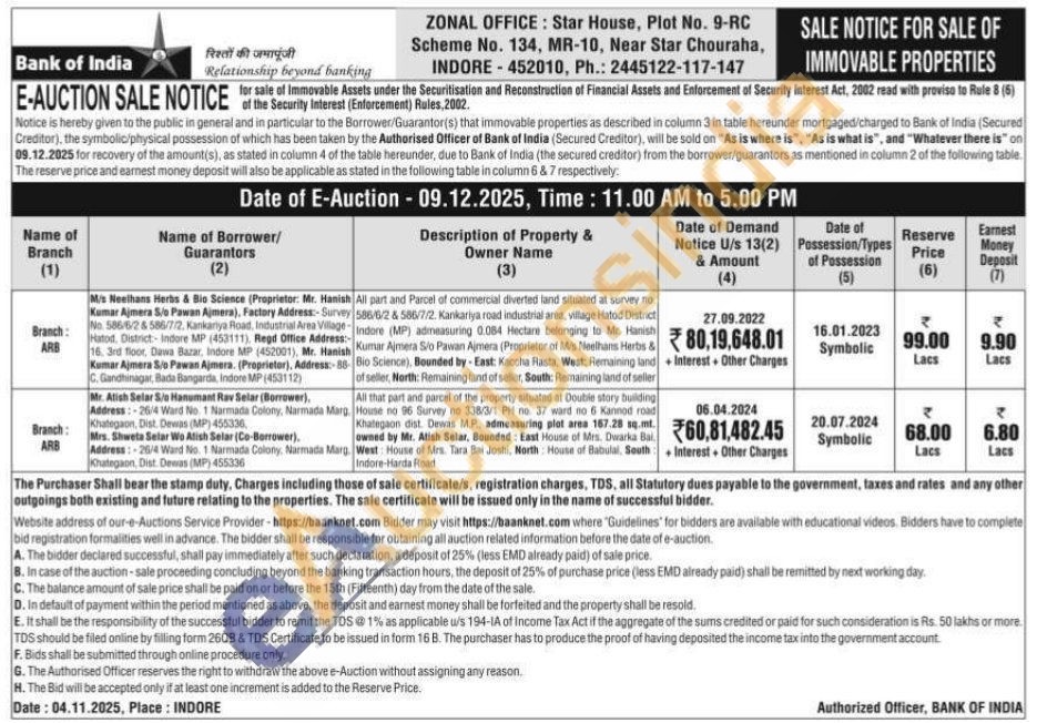 property situated at Doutile story building House no 96 Survey no 338/3/1 PH no. 37 ward no 6 Kannod road Khategaon dist. Dewas M.P, admeasuring plot area 167.28 sq.mi. owned by Mr. Atish Selar,