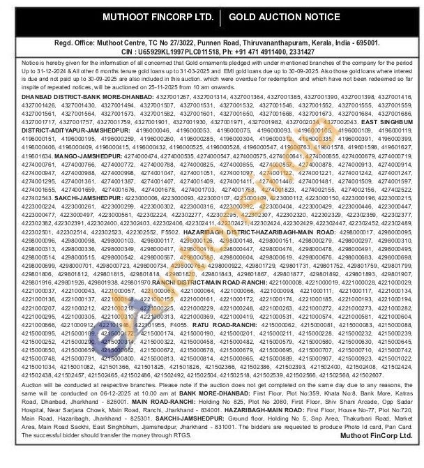 Muthoot Fincorp Ltd Gold Auctions Auction in Ranchi