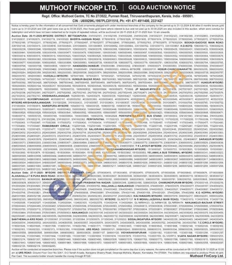 Muthoot Finance Ltd Gold Auctions Auction in Mysuru