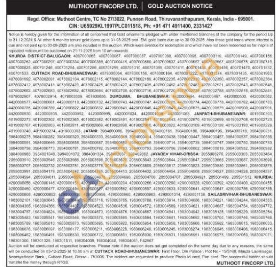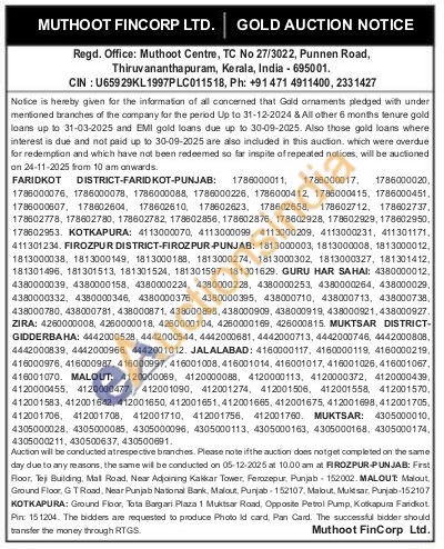 Muthoot Fincorp Ltd Gold Auctions Auction in Faridkot