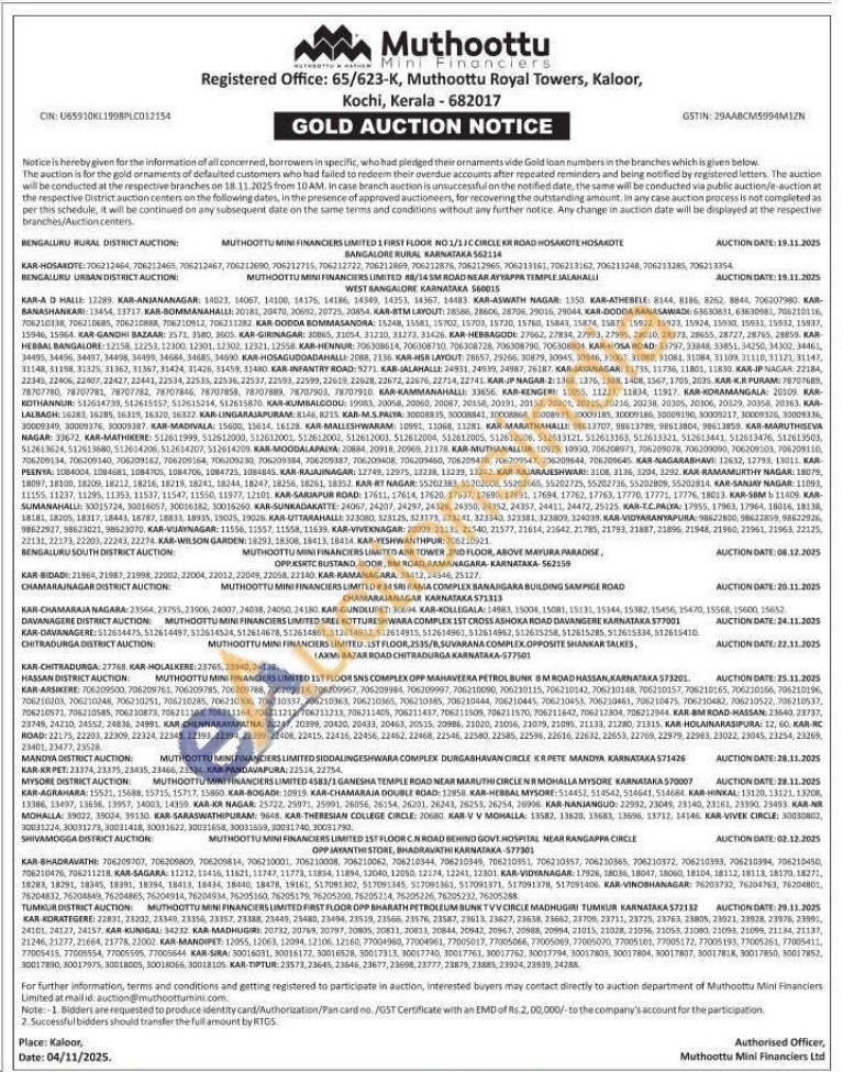 Muthoottu Mini Financiers Limited Gold Auctions Auction in Bengaluru