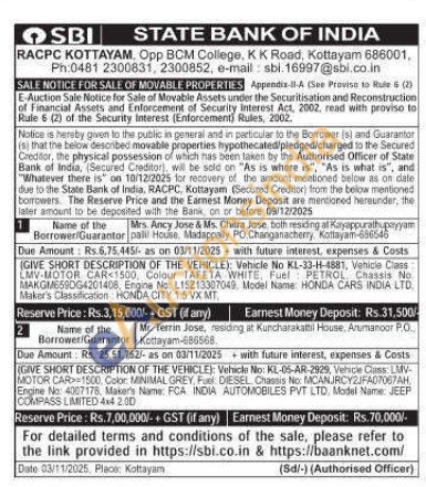 GIVE SHORT DESCRIPTION OF THE VEHICLE): Vehicks No: KL-05-AR-2929, Vehicle Class: LMV-MOTOR CAR-1500, Color MINIMAL GREY, Fuel: DIESEL Chassis No: MCAN.JRCY2JFA07067AH, Engine No: 4007176. Maker's Name: FCA INDIA AUTOMOBILES PVT LTD. Model Name: JEEP COMPASS LIMITED 4x4 2.00
