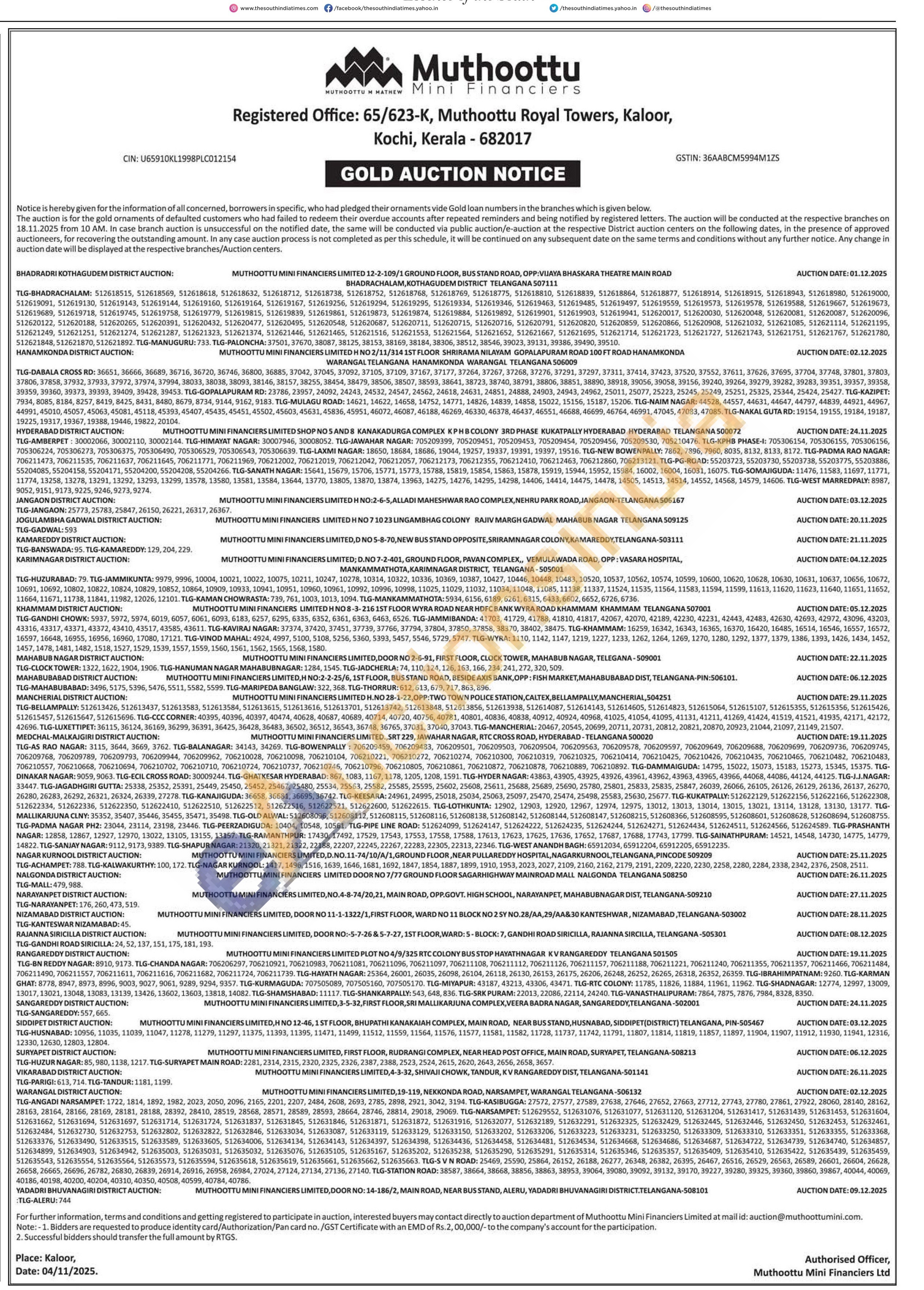 Muthoot Finance Ltd Gold Auctions Auction in Kochi