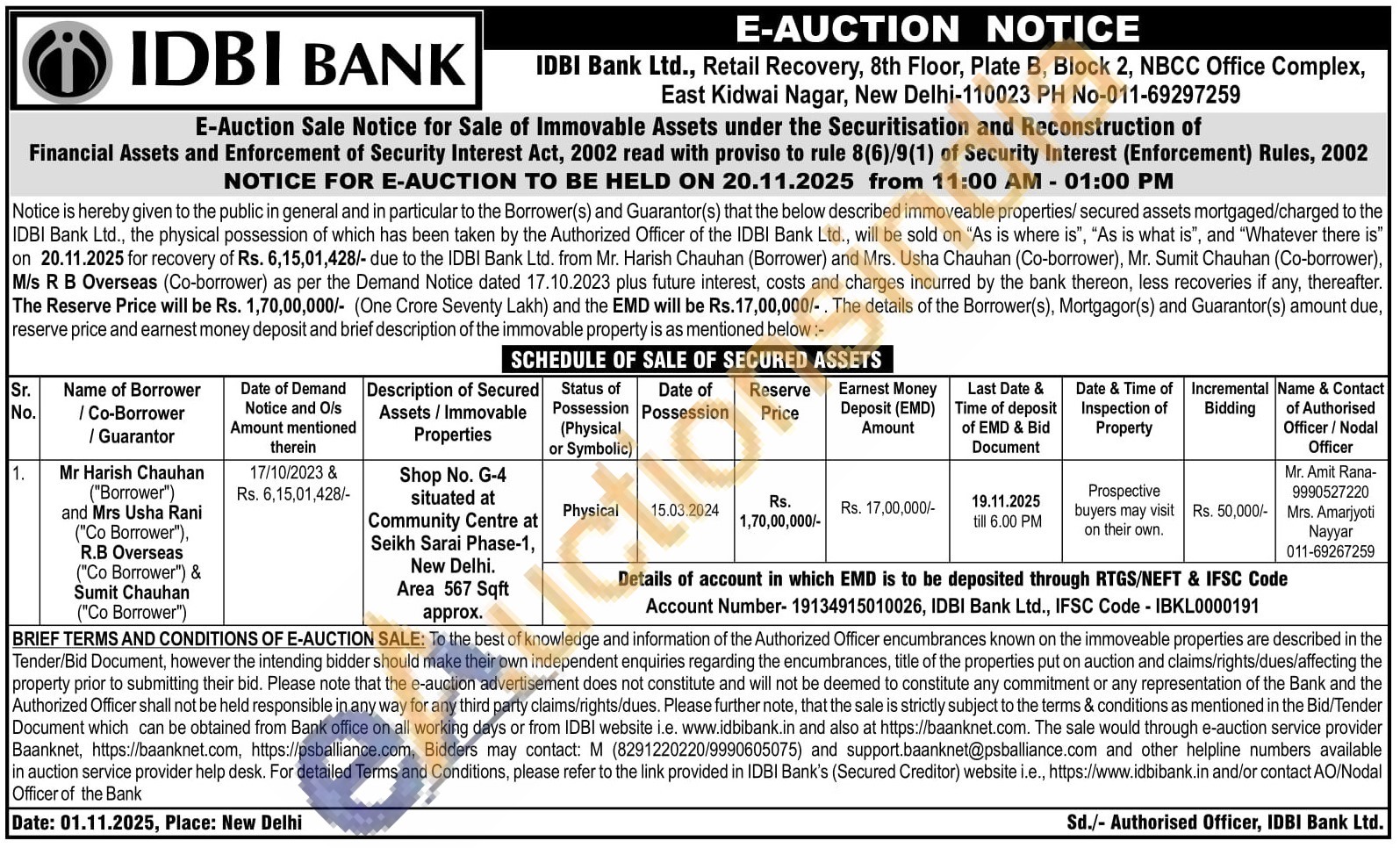 Shop No. G-4 situated at Community Centre at Seikh Sarai Phase-1, New Delhi. Area 567 Sqft approx