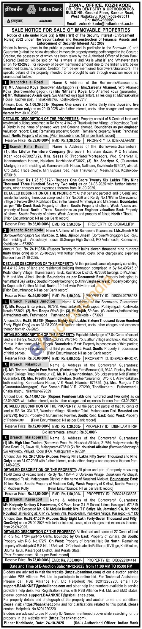 DETAILED DESCRIPTION OF THE PROPERTY: All piece and part of property measuring 18.48 Cents of vacant land in Re Sy No. 115/4-4 of Oorakam Village, Oorakkam Panchayat, Tirurangadi Taluk, Malappuram District in the name of Noushad Allakkat. Boundaries: East: 10 feet Road, South: Property of Mioideen Kutty, West: Property of K Alavi, North: Property of Moideen Kutty