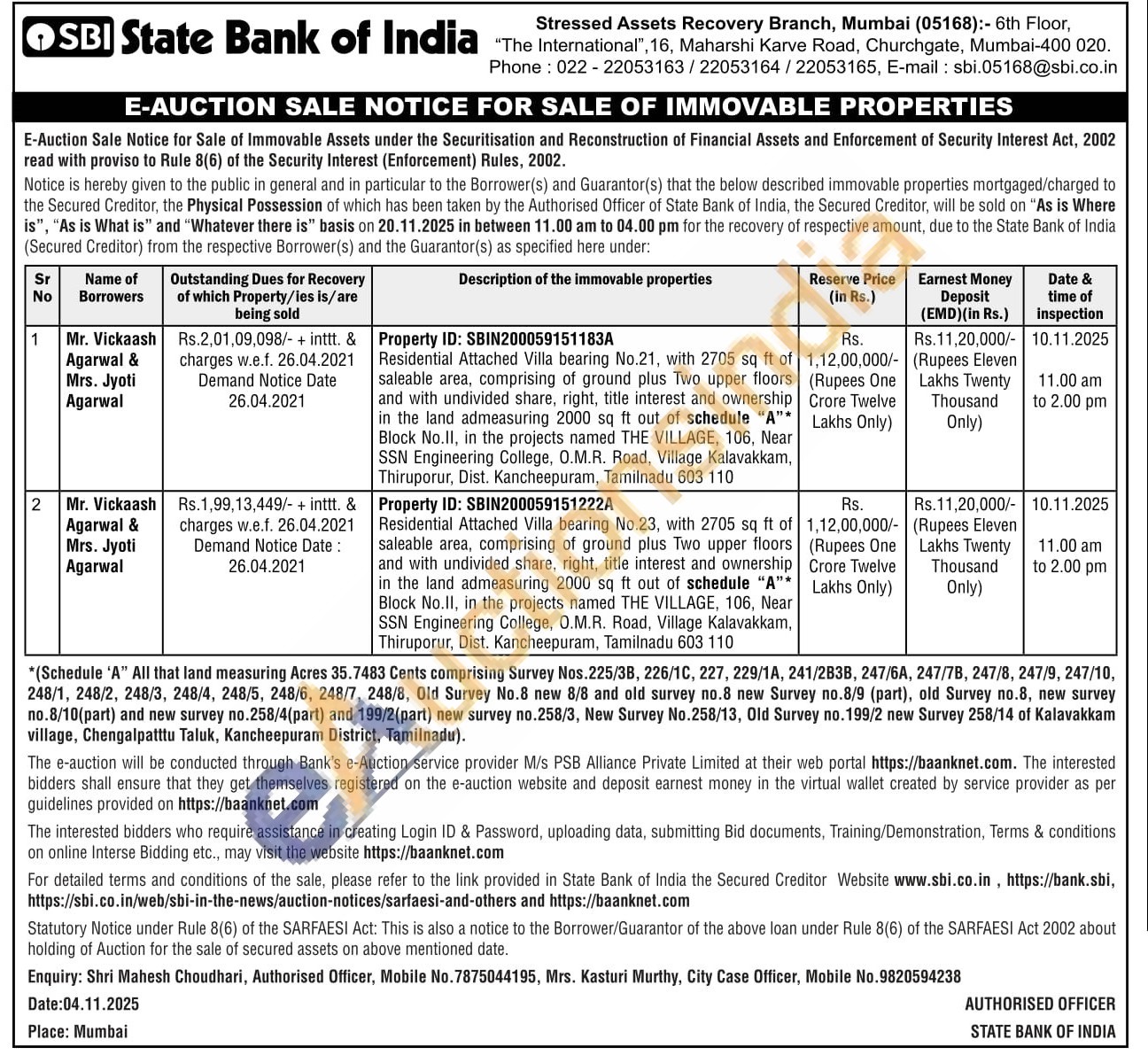 Authorised Officer, Mobile No.7875044195, Mrs. Kasturi Murthy, City Case Officer, Mobile No.9820594238