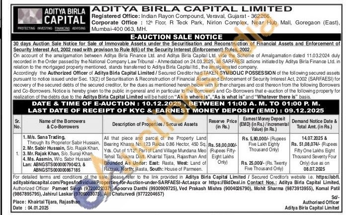 Property Land Bearing Khasra No. 123 Rakba 0.86 Hector, 450 Sq. Yds. Out of 1/12 Part of Land Village Mundana Meo Tehsil Tapukara Distt. Khairtal Tijara, Rajasthan And Bounded As Under: East: Rasta, West: Land of Razzak, North: Rasta, South: House of Parmeen