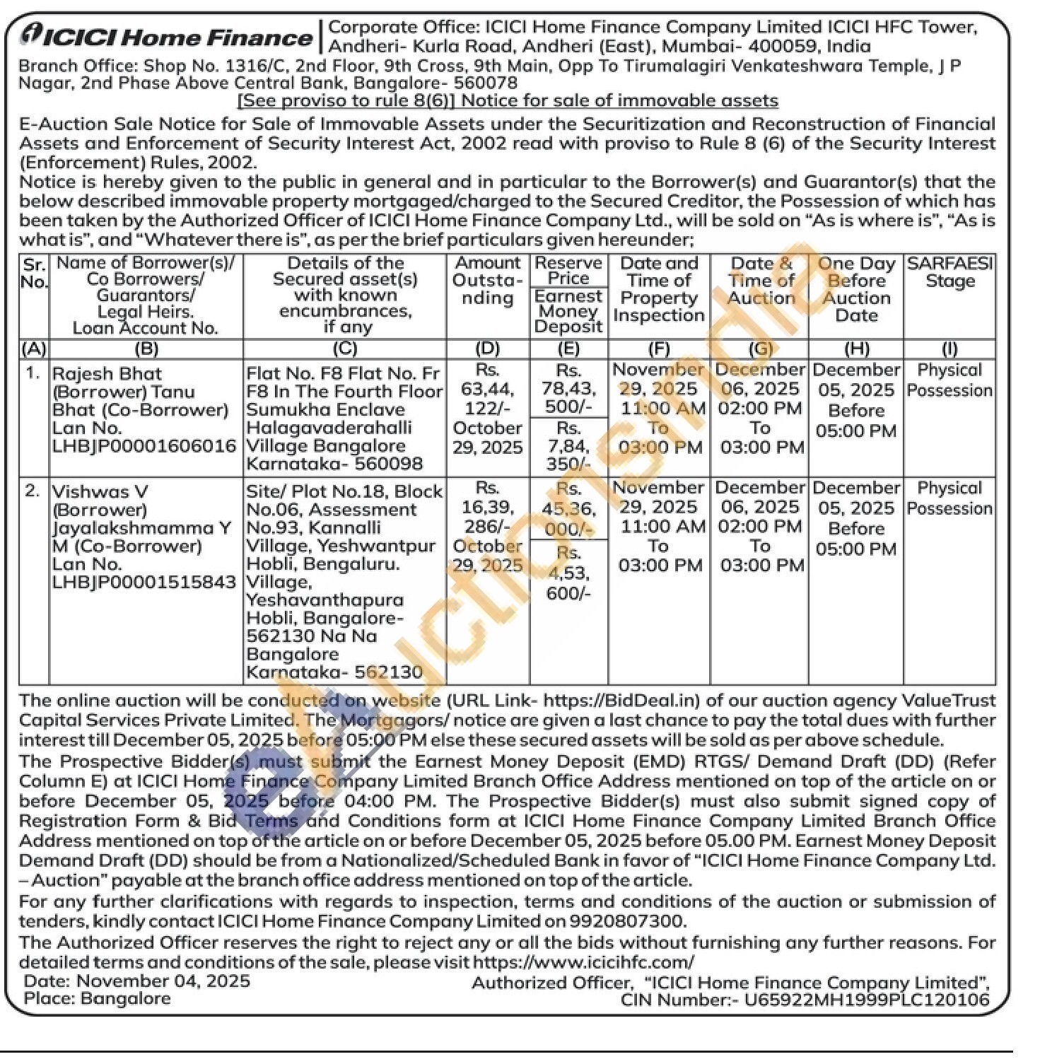 2) Site/ Plot No.18, Block No.06, Assessment No.93, Kannalli Village, Yeshwantpur Hobli, Bengaluru. Village, Yeshavanthapura Hobli, Bangalore-562130 Να Να Bangalore Karnataka-562130