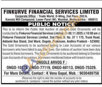 FINKURVE FINANCIAL SERVICES LIMITED Gold Auctions Auction in Mumbai