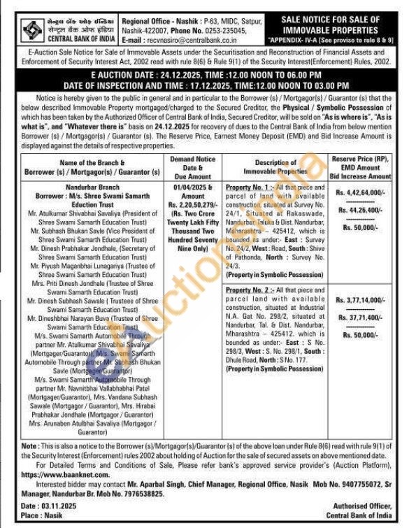 All that piece and parcel of land with available construction, situated at Survey No. 24/1, Situated at Rakaswade, Nandurbar, Taluka & Dist. Nandurbar, Maharashtra 425412, which is bounded as under: East: Survey No. 24/2, West: Road, South: Shive of Pathonda, North: Survey No. 24/3