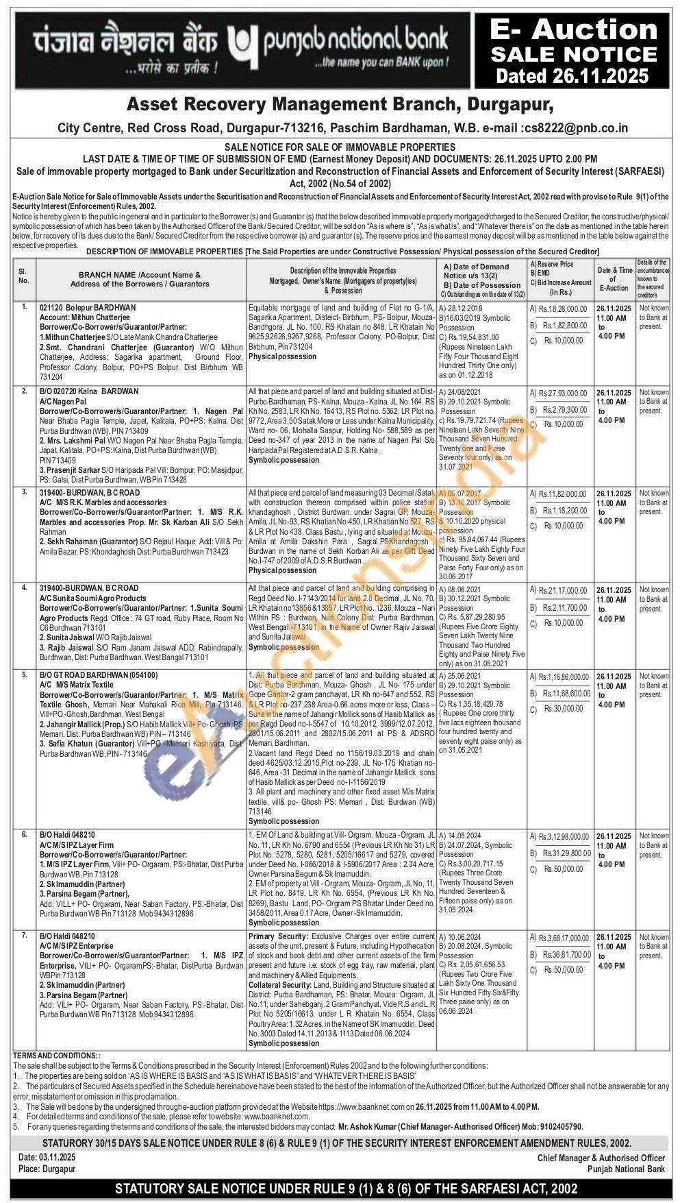 All that piece and parcel of land measuring 03 Decimal/Satak with construction thereon comprised within police stafion khandaghosh, District Burdwan, under Sagrai GP, Mouza- Amilia, JL No-93, RS Khatian No-450, LR Khatian No 527,& LR Plot No 438, Class Bastu, lying and situated at Mouza-possession Amila at Amila Dakshin Para Sagra, PSKhandagosh Burdwan in the name of Sekh Korban Ali as per Gift Deed No.1-747 of 2009 of A. D.S.R Burdwan