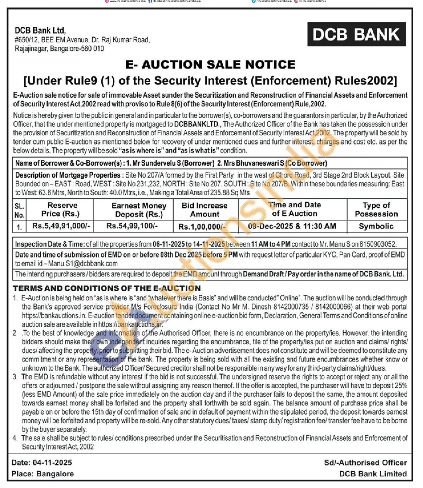 Site No 207/A formed by the First Party in the west of Chord Road, 3rd Stage 2nd Block Layout. Site Bounded on-EAST: Road, WEST: Site No 231,232, NORTH: Site No 207, SOUTH: Site No 207/B. Within these boundaries measuring: East to West: 63.6 Mtrs, North to South: 40.0 Mtrs, i.e., Making a Total Area of 235.88 Sq Mts