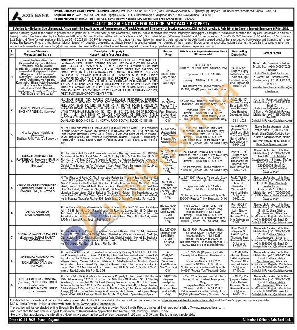 PROPERTY:-1-ALL THAT PIECES AND PARCELS OF PROPERTY SITUATED AT LAKHAWAD LAKHAWAD PATI, PATI, NADIAD NADIAD BEARING BEARING RS NO. 2175 PAIKI PLOT PLOT NO 18 ADM ABOUT AGGREGATE 229-32 SQ.MTRS. CITY SURVEY A. A WARD NO. 02, CITY SURVEY NO. 1893, PROPERTY 2 ALL THAT PIECES AND PARCELS OF PROPERTY SITUATED AT LAKHAWAD PATI, NADIAD BEARING R.S NO. 2175 PAIKI PLOT NO. 19 ADM. ABOUT AGGREGATE 199-97 SQ.MTRS. CITY SURVEY A. A WARD NO. 02, CITY SURVEY NO. 1892, PROPERTY-3-ALL THAT PIECES AND PARCELS OF PROPERTY SITUATED AT LAKHAWAD PATI, NADIAD BEARING R.S NO. 2175 PAIKI ADM. ABOUT AGGREGATE 532-10 SQ.MTRS LAND. CITY SURVEY A A WARD NO. 02, CITY SURVEY NO. 1891. SURROUNDING: NORTH: COMMON PLOT, SOUTH: ROAD, EAST: LAND OF REVENUE SURVEY NO-2173, WEST: PLOT NO.19 OF GOVINDBHAI PATEL