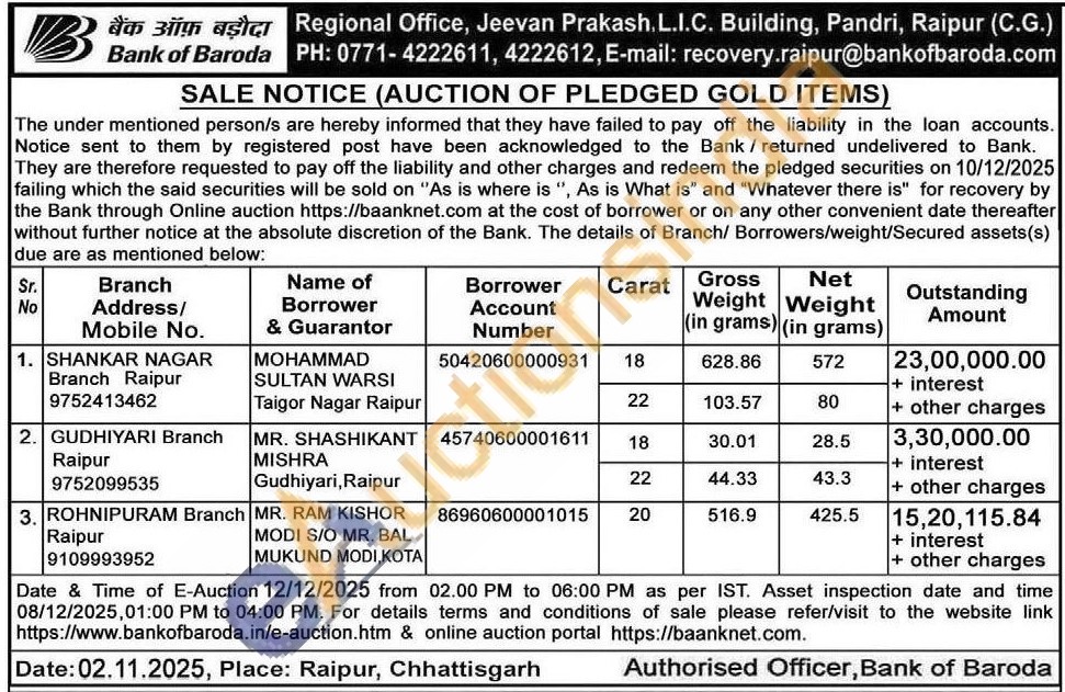 Bank of Baroda Gold Auctions Auction in Raipur
