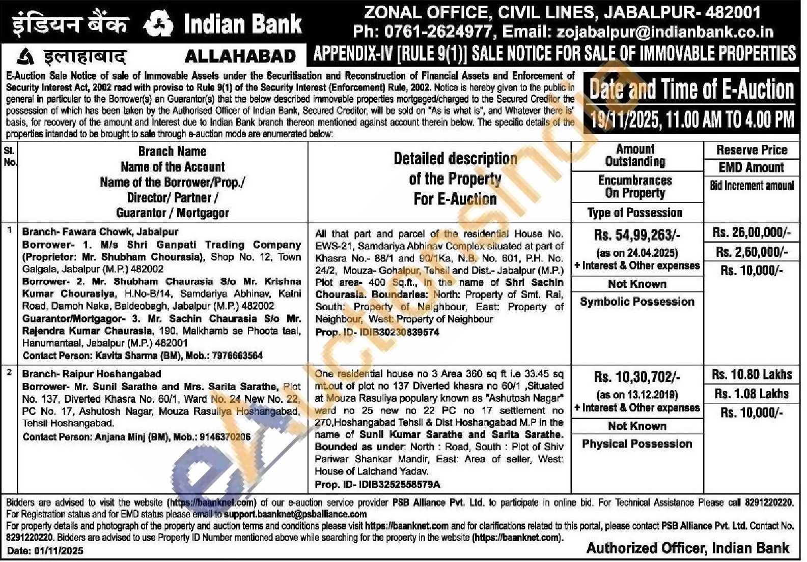 One residential house no 3 Area 360 sq ft i.e 33.45 sq mt.out of plat no 137 Diverted khasra no 60/1, Situated at Mouza Rasuliya populary known as "Ashutosh Nagar" ward no 25 new no 22 PC no 17 settlement no 270, Hoshangabad Tehsil & Dist Hoshangabad M.P in the narne of Sunil Kumar Sarathe and Sarita Sarathe. Bounded as under: North Road, South: Plot of Shiv Pariwar Shankar Mandir, East Area of seller, West: House of Lalchand Yadav Prop. ID-IDIB3252558579A
