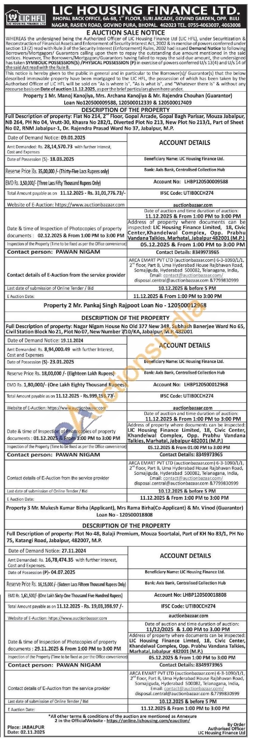 Full Description of property: Flat No 214, 2 Floor, Gopal Arcade, Gopal Bagh Parisar, Mouza Jabalpur, NB 264, PH No 04, Vrutt-30, Khasra No 282/1, Diverted Plot No 213, New Plot No 213/1, Part of Sheet No 02, RNM Jabalpur-1, Dr. Rajendra Prasad Ward No 37, Jabalpur, M.P