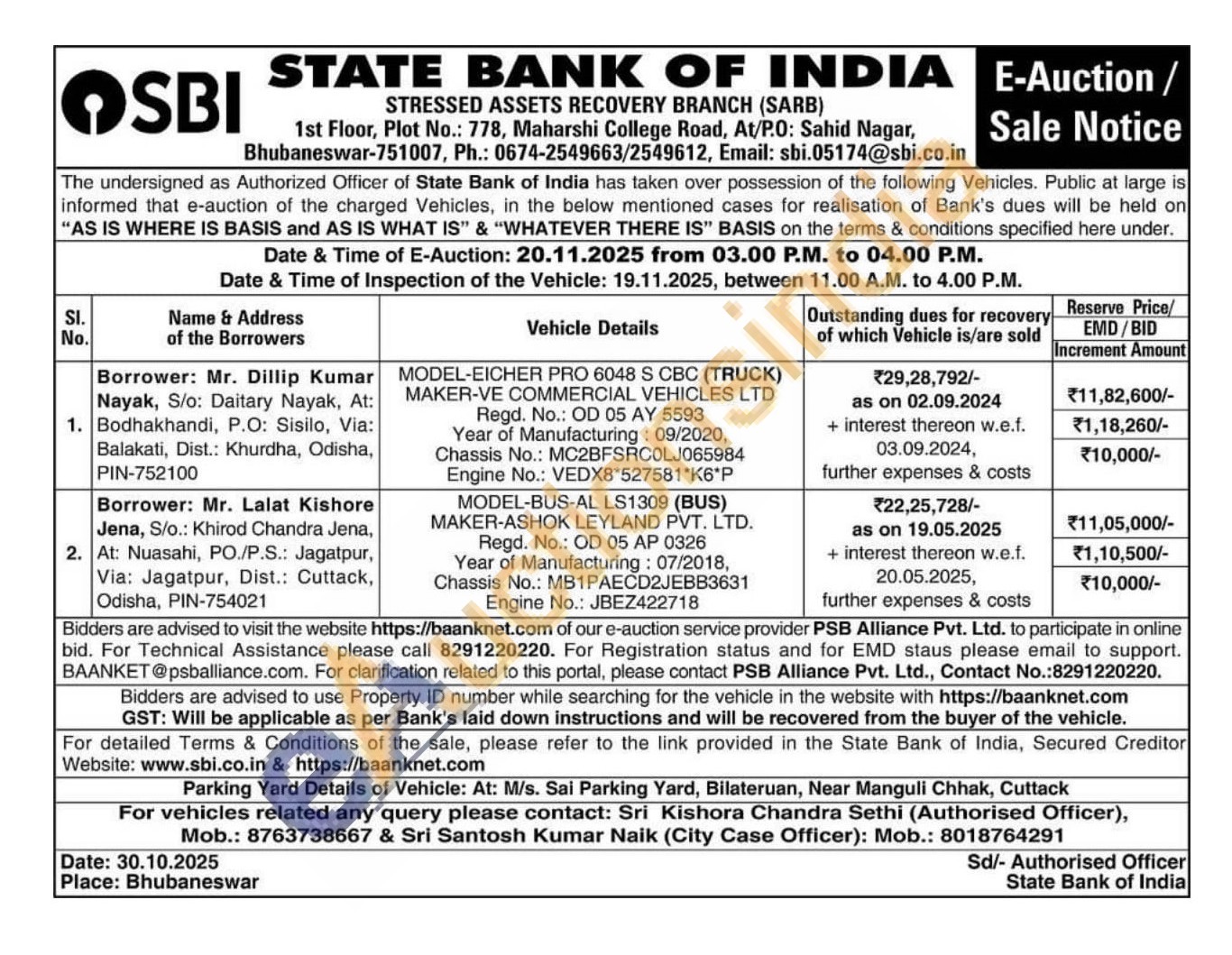 MODEL-EICHER PRO 6048 S CBC (TRUCK) MAKER-VE COMMERCIAL VEHICLES LTD Regd. No.: OD 05 AY 5593 Year of Manufacturing: 09/2020, Chassis No.: MC2BFSRC0LJ065984 Engine No.: VEDX8*527581*K6*P