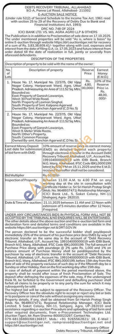 House No. 17. Municipol No. 22/37/5, Old Vijay Nagar Colony, Hariparwat Ward, Agra, Uttar Pradesh. Admeasuring An Area of 111.52 Sq. House No. 17. Municipal No. 22/37/5, Old Vijay Nagar Colony Hariparwat Ward, Agro, Uttar Pradesh. Admeasuring An Area of-111.52 Sq. Mtrs. Bounded as:
