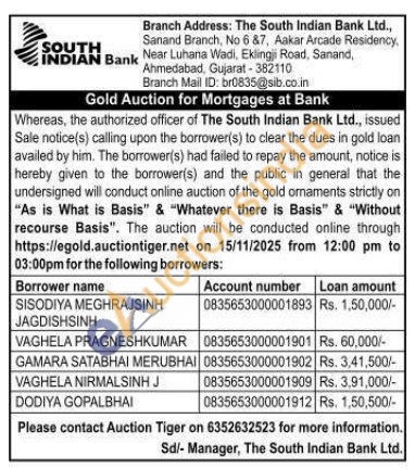 South Indian Bank Gold Auctions Auction in Ahmedabad