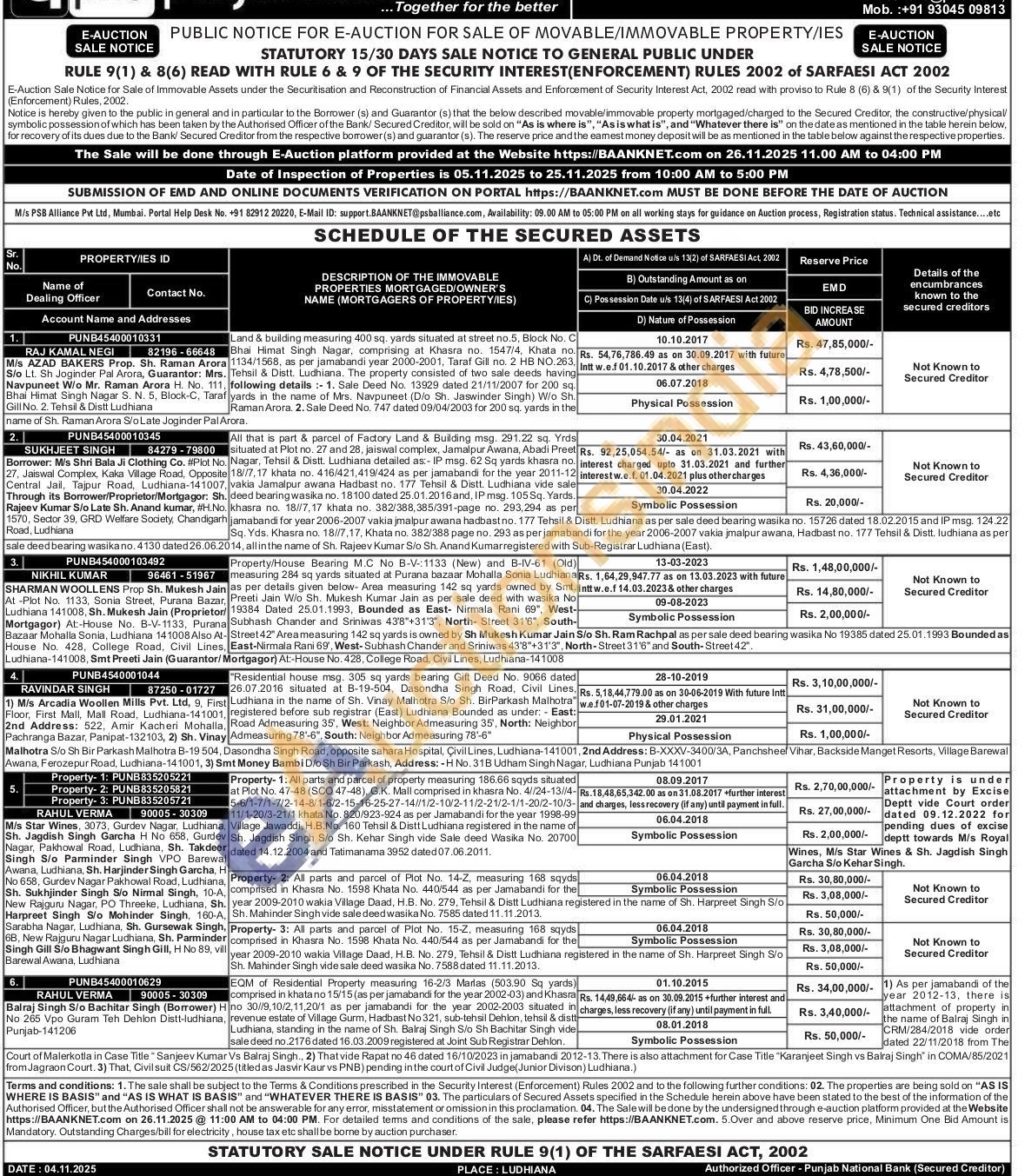 All parts and parcel of property measuring 186.66 sqyds situated at Plot No. 47-48 (SCO 47-48), G.K. Mall comprised in khasra No. 4//24-13//4-5-6/1-7/1-7/2-14-8/1-6/2-15-16-25-27-14/11/2-10/2-11/2-21/2-1/1-20/2-10/3-11/1-20/3-21/1 khata No. 820/923-924 as per Jamabandi for the year 1998-99 Village Jawaddi, H.B.No. 160 Tehsil & Distt Ludhiana