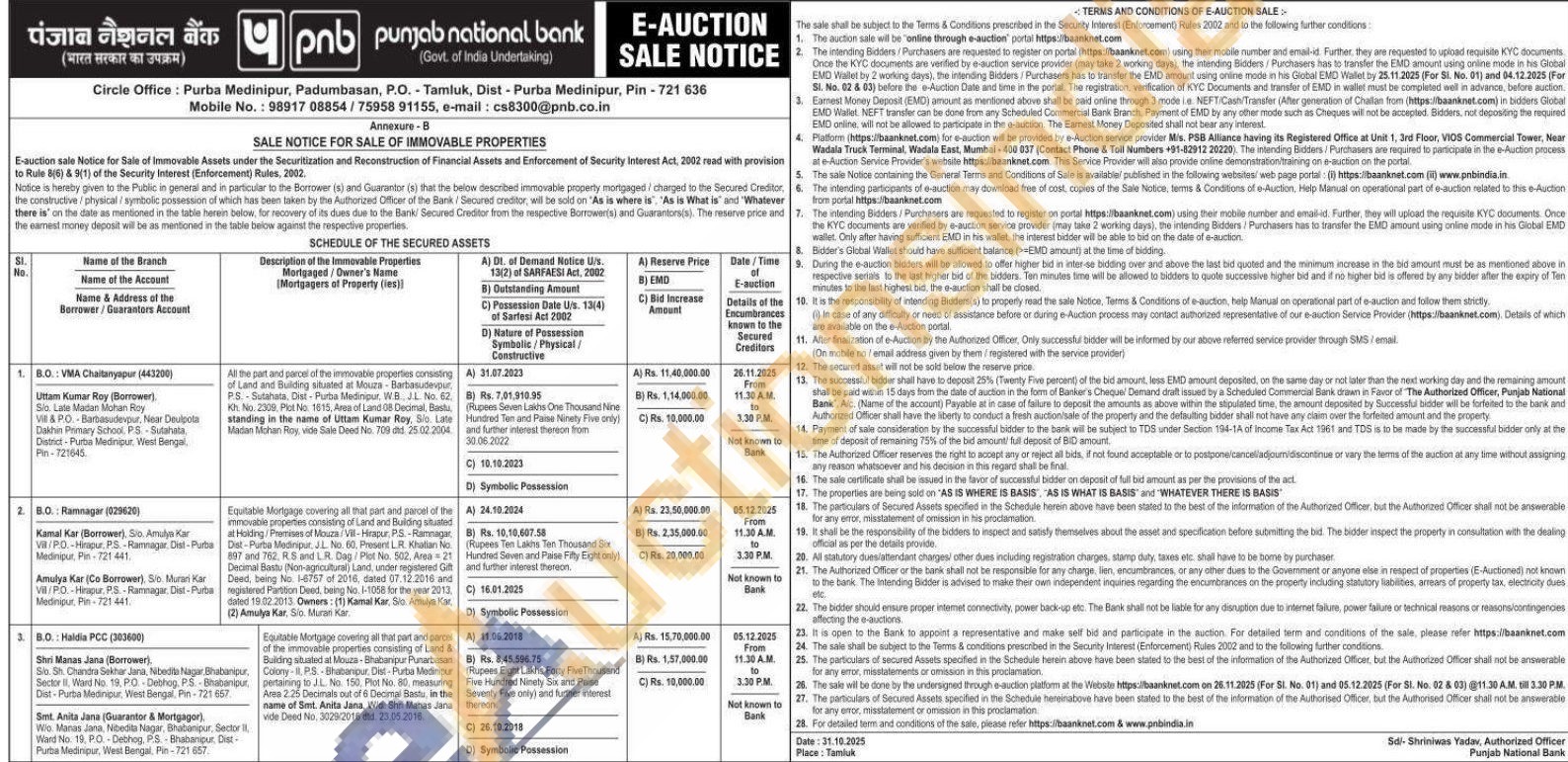 All the part and parcel of the immovable properties consisting of Land and Building situated at Mouza-Barbasudevpur P.S.-Sutahata, Dist-Purba Medinipur, W.B., J.L. No. 62. Kh. No. 2308, Plot No. 1615, Area of Land 08 Decimal, Bastu, standing in the name of Uttam Kumar Roy, Sio Late Madan Mohan Roy, vide Sale Deed No. 709 did 25.02.2004