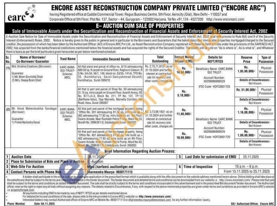 Surat-395010 All that is part and parcel of Shop No. 50 admeasuring 31.15 sq. mtrs carpet on Ground Floor, Avanth Areria, RS No. 97/1+2+3, Block No. 211, FP No. 131, TP-13 (Barthana-Vesu), Opp Marvella, Marvella Corridor, VIP Road, Vesu, Surat-395007