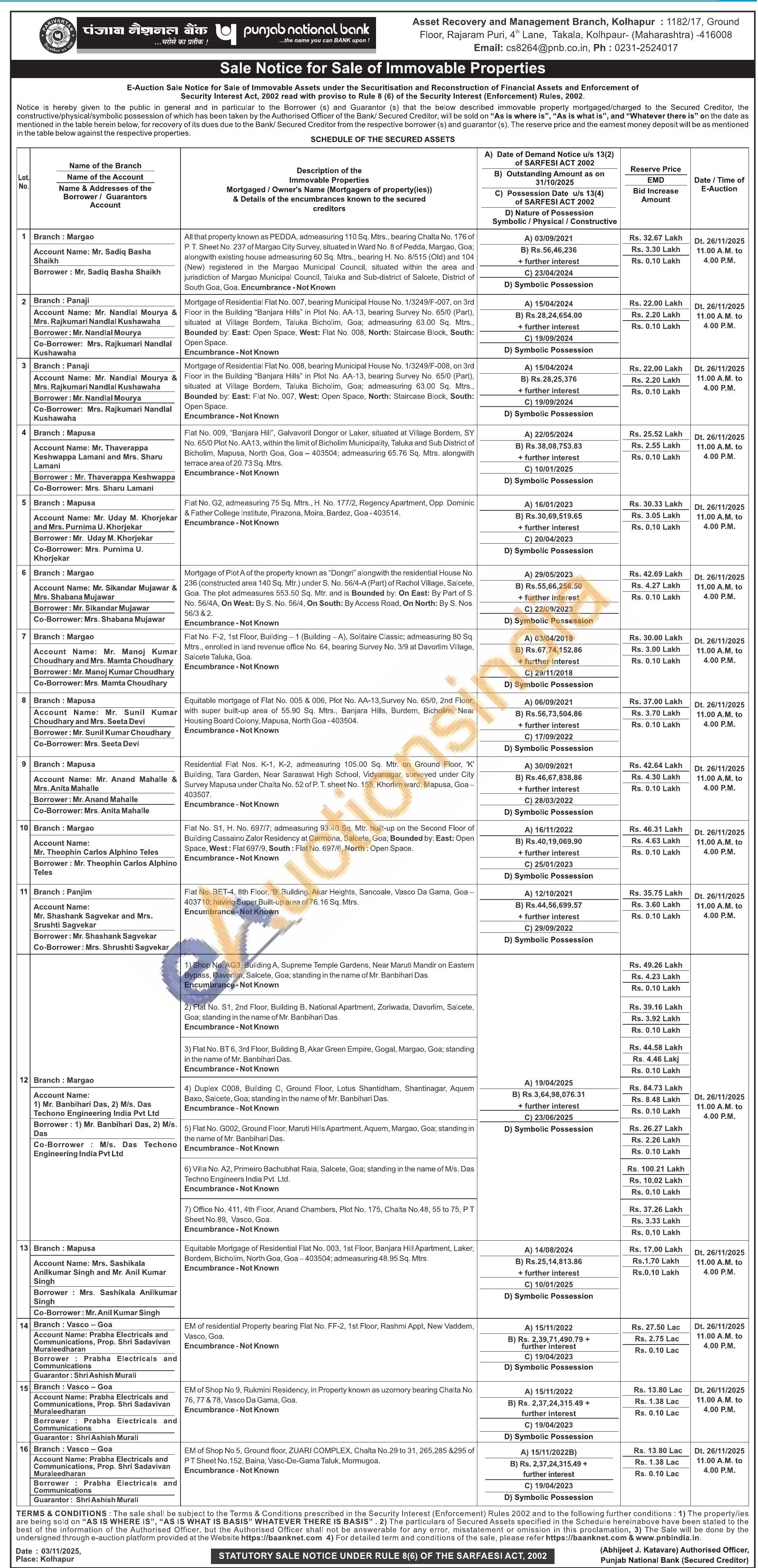 Contact Email: cs8264@pnb.co.in, Ph: 0231-2524017