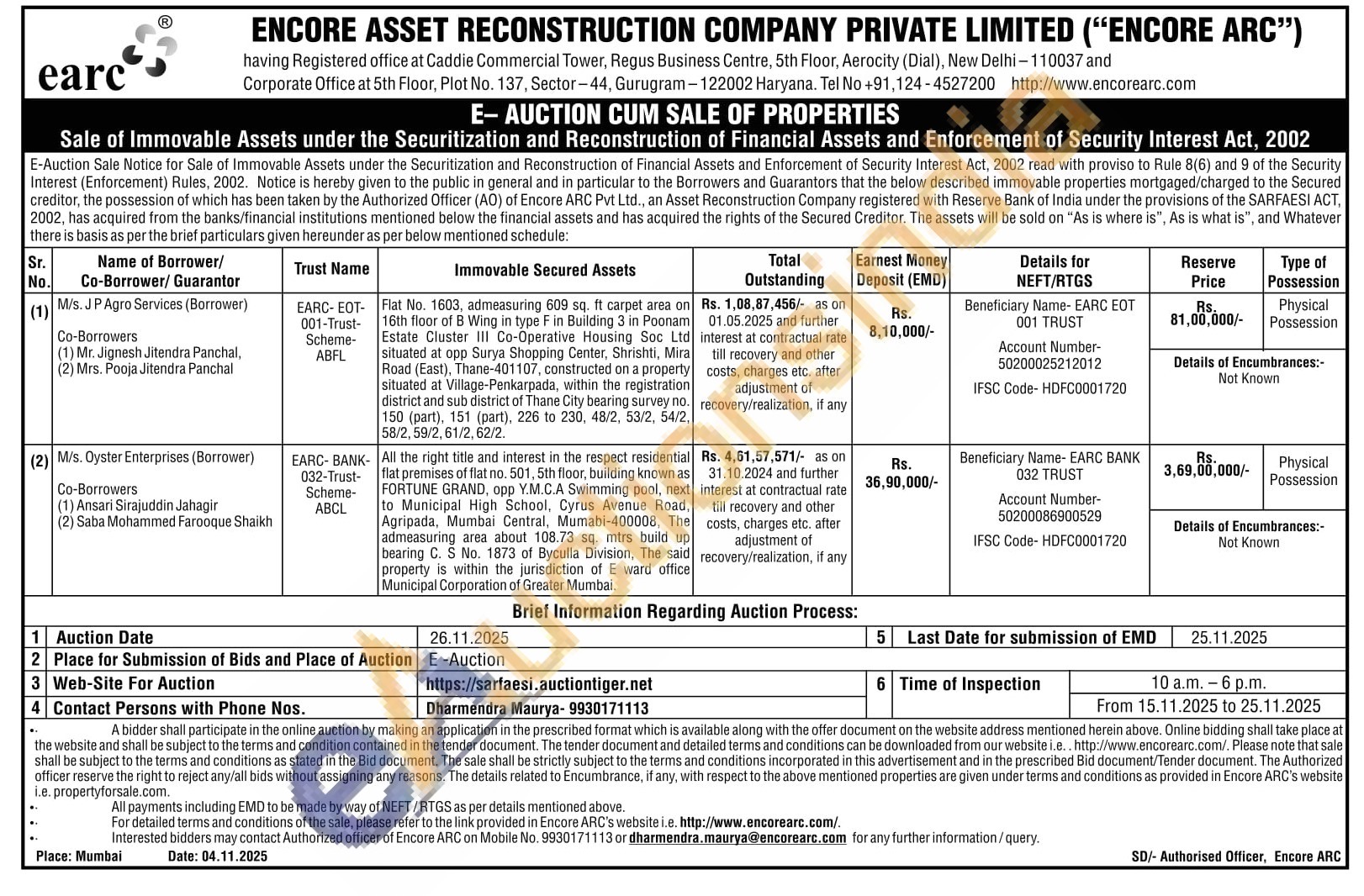 Flat No. 1603, admeasuring 609 sq. ft carpet area on 16th floor of B Wing in type F in Building 3 in Poonam Estate Cluster III Co-Operative Housing Soc Ltd situated at opp Surya Shopping Center, Shrishti, Mira Road (East), Thane-401107, constructed on a property situated at Village-Penkarpada, within the registration district and sub district of Thane City bearing survey no. 150 (part), 151 (part), 226 to 230, 48/2, 53/2, 54/2, 58/2, 59/2, 61/2,62/2