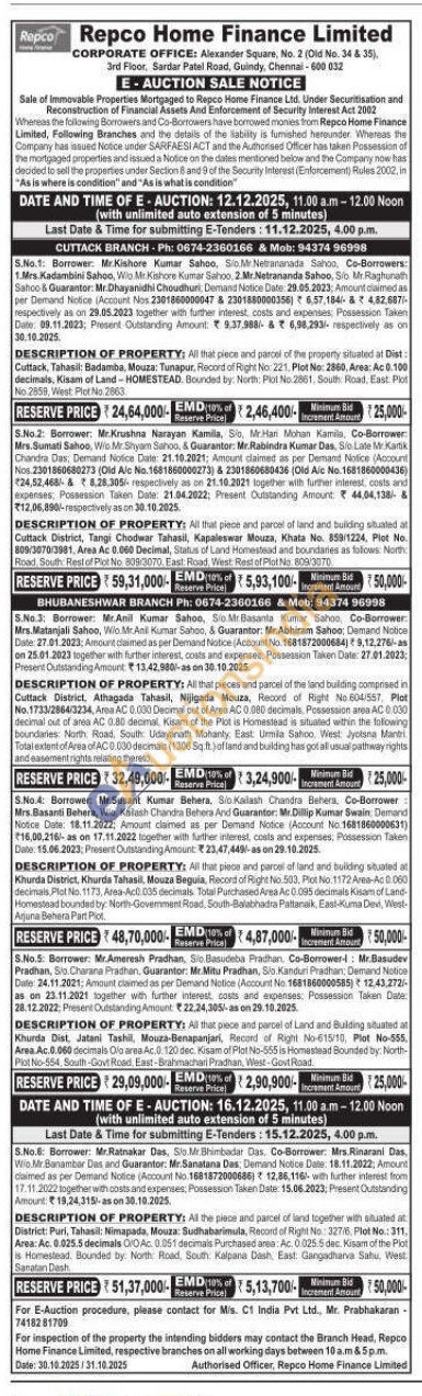 1) All that piece and parcel of the property situated at Dist: Cuttack, Tahasil: Badamba, Mouza: Tunapur, Record of Right No: 221, Plot No: 2860, Area: Ac 0.100 decimals, Kisam of Land-HOMESTEAD. Bounded by: North: Plot No.2861, South Road, East Plot No 2859, West Plot No. 2863