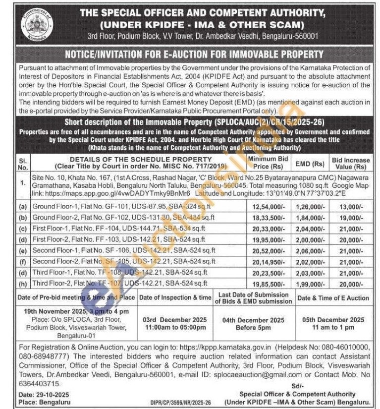 4) Site No. 10, Khata No. 167, (1st A Cross, Rashad Nagar, 'C' Block, Ward No.25 Byatarayanapura CMC) Nagawara Gramathana, Kasaba Hobli, Bengaluru North Taluku, Bengaluru-560045. Total measuring 1080 sq.ft Google Map link: https://maps.app.goo.gl/4vwDADYTmky9BnMr6 Latitude and Longitude: 13°01'49.0″N 77°37'03.2"E