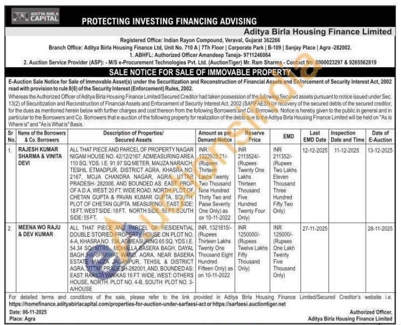 ALL THAT PIECE AND PARCEL OF PROPERTY NAGAR NIGAM HOUSE NO. 42/12/2167, ADMEASURING AREA 110 SQ. YDS. I.E. 91.97 SQ METER, MAUZA NARAICH, TESHIL ETMADPUR, DISTRICT AGRA, KHASRA NO. 2167, MOJA CHANDRA NAGAR, AGRA, UTTAR PRADESH-282006, AND BOUNDED AS: EAST: PROP OF AD.A, WEST: 20 FT. WIDE ROAD. NORTH: PLOT OF CHETAN GUPTA & PAVAN KUMAR GUPTA, SOUTH: PLOT OF CHETAN GUPTA, MEASURING: EAST SIDE: 18 FT. WEST SIDE: 18FT. NORTH SIDE: 55 FT. SOUTH SIDE: 55 FT.