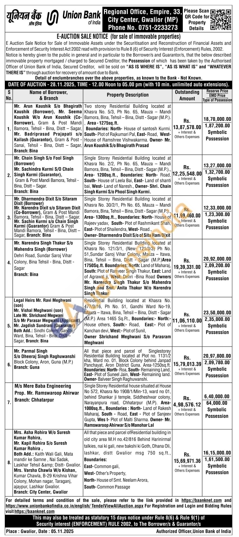 Single Storey Residential house situated at House No 572, Khasra No 1908/1/Min-13, ward no 01, behind Shankar ji temple, Siddheshwar colony, Narayanpura road, Chhatarpur (M.P). Area-1000sq.ft., Boundaries: North- Land of Rakesh Maharaj, South Road, East Plot of Sanjeev Gupta, Wes t- Plot of Malti Sharma. Owner- Mr. Ramswaroop Ahirwar S/o Manohar Lal