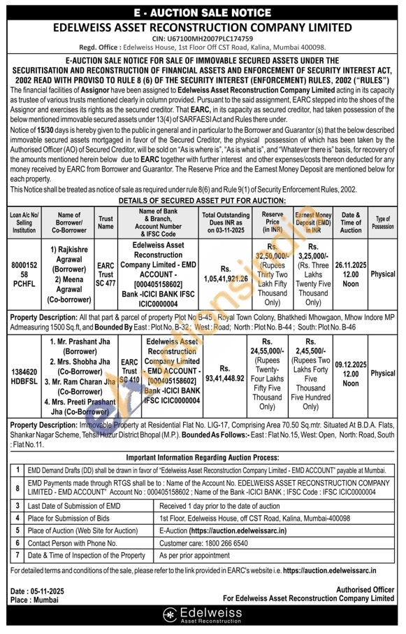 All that part & parcel of property Plot No B-45, Royal Town Colony, Bhatkhedi Mhowgaon, Mhow Indore MP Admeasuring 1500 Sq.ft, and Bounded By East: Plot No. B-32; West: Road; North: Plot No. B-44; South: Plot No. B-46