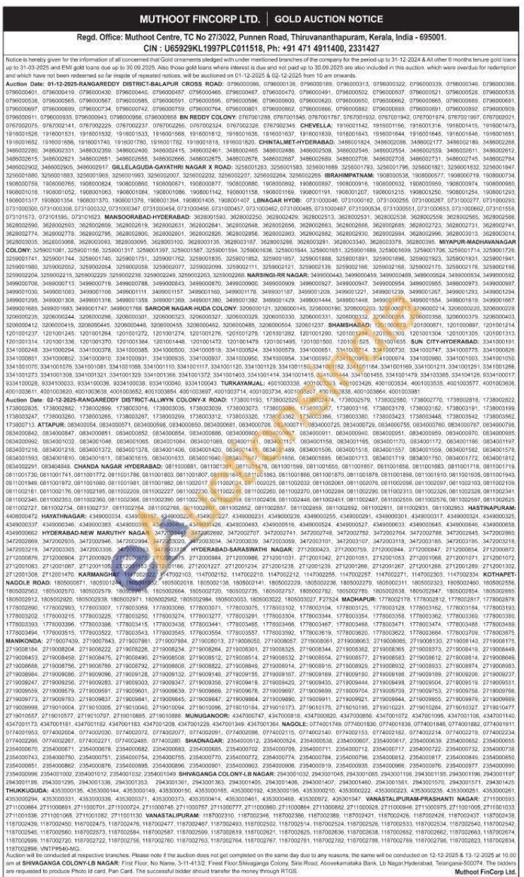 Muthoot Fincorp Ltd Gold Auctions Auction in Thiruvananthapuram