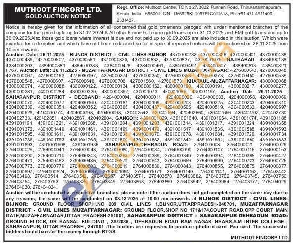 Muthoot Fincorp Ltd Gold Auctions Auction in Bijnor