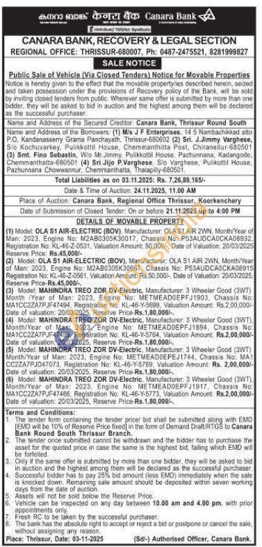 Model: OLA S1 AIR-ELECTRIC (BOV), Manufacturer: OLA S1 AIR 2WN, Month/Year of Man: 2023, Engine No: M2AB0305K30667, Chassis No: P53AUDCA0CKA08915 Registration No: KL-46-Z-0561, Valuation Amount: Rs.50,000/-, Date of Valuation: 20/03/2025